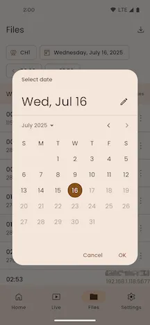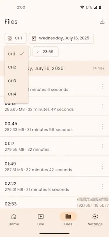Section titled “设备文件列表”点击通道菜单按钮,选择要查看的设备文件通道。