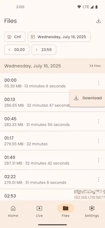 点击文件列表项右侧的更多按钮,在弹出菜单中点击下载按钮,进入设备文件下载页面。